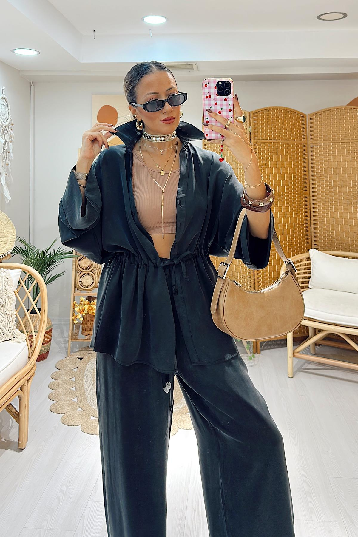 Cupra Kumaş Bağlamalı Model- Siyah